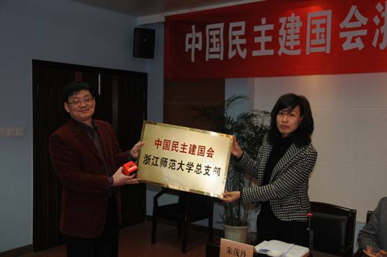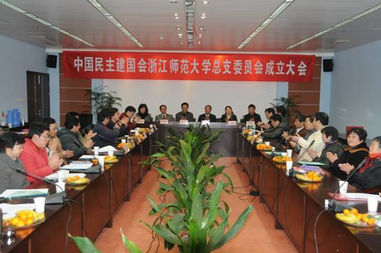 2009年 12月23日下午,民建浙江師范大學總支委員會成立大會在浙江師范大學行政中心會議室隆重舉行,民建浙江師范大學支部正式升格為民建浙江師范大學總支委員會。民建浙江省委會副主委、金華市人民政府副市長黃小杭,浙師大黨委副書記張先亮,黨委委員、統戰部部長張元龍,中共金華市委統戰部部務會成員、黨派干部處處長鮑偉娟,民建金華市委副主委朱茂丹等領導參加了會議并作了重要講話,民建蘭溪總支主任徐樂及浙師大各民主黨派和統戰團體負責人應邀出席本次大會。