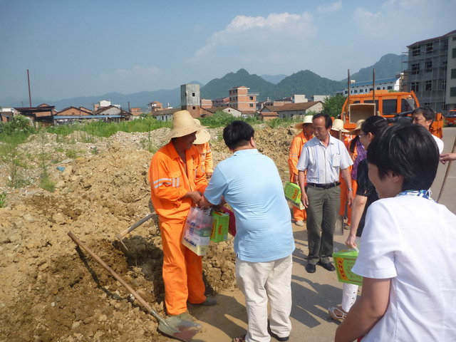 8月10日下午,民建義烏總支第一支部主任孟海誼、副主任張鑫林、楊德宏等一行6人來到義烏市公路管理所赤岸養護站慰問冒著烈日酷暑工作在一線的公路養護工人。