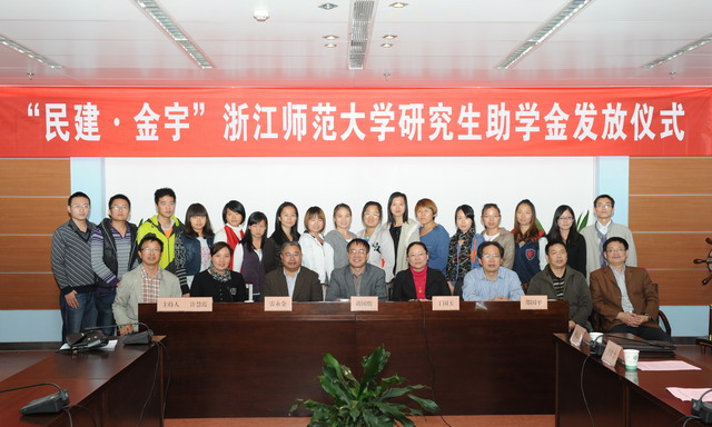 2012年11月5日,“民建•金宇研究生助學(xué)金”發(fā)放儀式在浙江師范大學(xué)行政中心第六會議室舉行,浙江師范大學(xué)20名研究生成為“金宇研究生助學(xué)金”的首批資助者,“民建•金宇”浙江師范大學(xué)研究生助學(xué)金,由民建會員、省人大代表、金宇房地產(chǎn)開發(fā)有限公司總經(jīng)理雷永金籌資設(shè)立。
