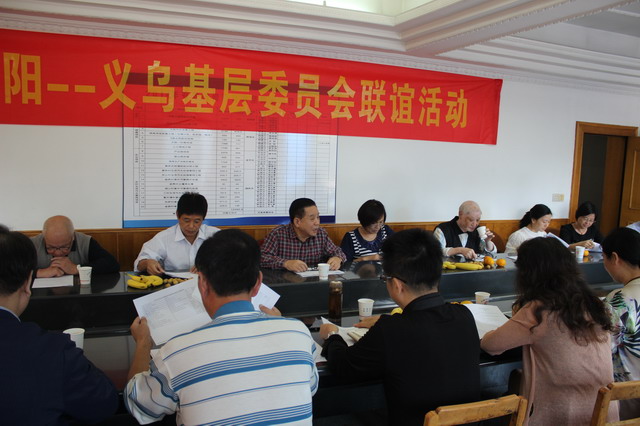 參觀走訪結束后,雙方在義烏民建第五支部會議室召開聯誼座談會。就基層組織在進一步關愛會員、加強社會服務、積極參政議政等方面做了深入交流,并就如何創新開展基層組織會務工作方面作了許多有意義地探索。民建金華市委會副主委陳琳在座談會上發表講話,充分肯定了此次活動的意義,表示民建東陽市基層委員會和民建義烏市基層委員會的會務工作扎實具有先鋒模范作用,并對進一步開展好基層組織工作提出了前瞻性的意見和建議。