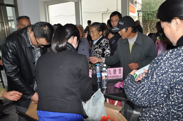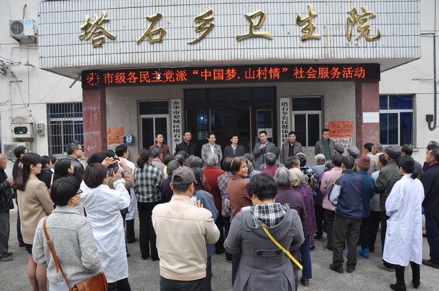 11月29日上午,市委統戰部和市級各民主黨派聯合組織開展的“中國夢•山村情”主題公益活動在婺城區塔石鄉啟動。活動旨在發揮統一戰線“人才薈萃•智力密集”的優勢,服務基層社會發展,改善基層百姓生活。活動中,會員企業九德堂向當地群眾免費發放近3萬元的常用藥品,深受群眾歡迎和好評。