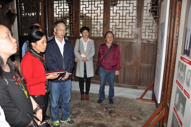 考察團(tuán)一行在金華市委會(huì)專職副主委陳琳、金東區(qū)總支部主委孫偉華的陪同下,參觀了民建中央愛(ài)國(guó)主義教育基地——施復(fù)亮故居,觀看了民建創(chuàng)始人之一施復(fù)亮先生的遺物及不同時(shí)期的圖片展覽。計(jì)勇強(qiáng)詳細(xì)地詢問(wèn)了施復(fù)亮故居修繕情況及申報(bào)愛(ài)國(guó)主義教育基地的相關(guān)過(guò)程,他表示,麗水民建也要發(fā)揮好章乃器在會(huì)史教育中的作用,讓更多的年輕會(huì)員讀會(huì)史,學(xué)會(huì)章,明責(zé)任。