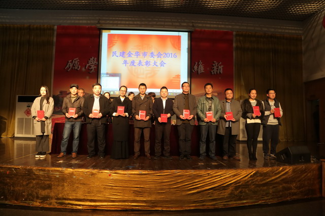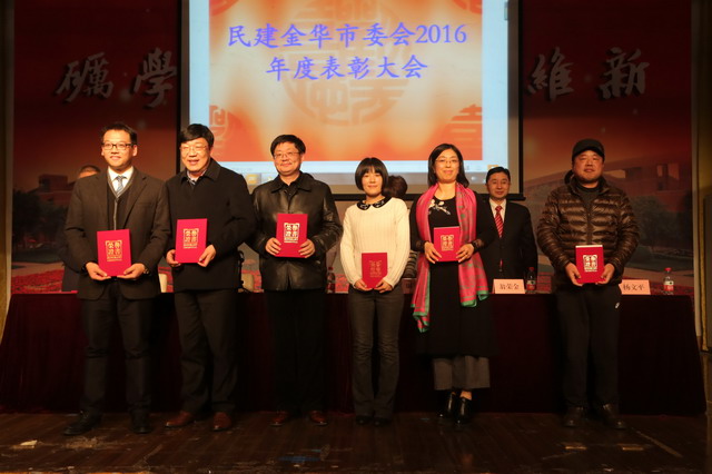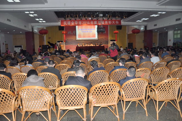 1月7日下午,民建金華市2016年度總結表彰大會在浙江師范大學學生活動中心召開。市委會副主委朱茂丹、翁榮金、陳琳、吳明根出席會議,市委統戰部部務會議成員、黨派干部處處長王萍應邀到會指導。市委委員,各基層組織主副委、委員及所屬支部主委,年度市級先進代表及部分骨干會員共180多人參加。