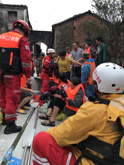 東陽民建入會積極分子葛會紅積極踴躍參加東陽市農商銀行紅十字應急救援隊,與7名救援隊員,帶上5條沖鋒舟、馬達、通訊指揮車等救援裝備,聯合其他民兵預備役組成17人的東陽民兵救援分隊趕赴蘭溪參與當地的防汛救援工作。截止26日下午17時,葛會紅帶領陽市農商銀行紅十字應急救援隊累計出動沖鋒舟92艘次,轉移安置群眾328人次。累了,他們席地而坐;困了,他們倦宿車內;餓了,他們吞食干糧,為蘭溪防汛救援貢獻出自己的一份力量!