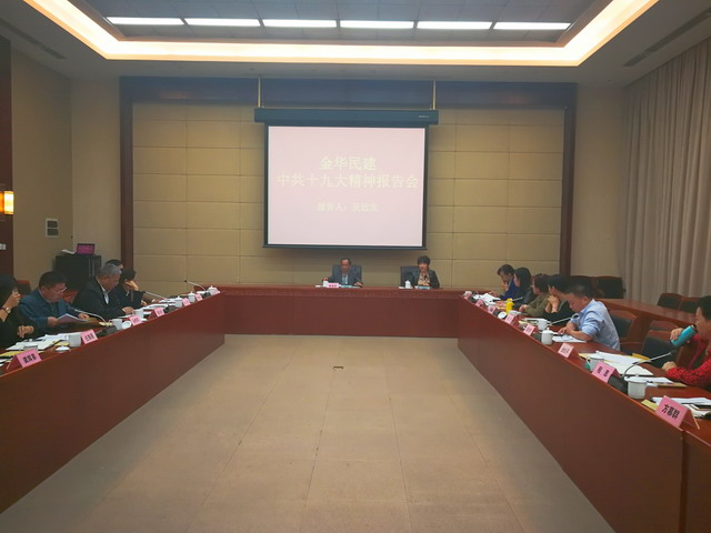 2017年11月3日,民建金華市委會召開中共十九大精神報告會和十屆十四次市委(擴大)會議,主題是學習貫徹中共十九大精神,并對下一步工作進行研究部署。市政協文史委主任吳遠龍應邀作十九大精神學習專題輔導報告。會議由市委會專職副主委陳琳主持,金東區副區長、副主委朱茂丹,浪莎集團董事長、副主委翁榮金,各市委委員,各基層組織主委及部分骨干會員共計31人出席會議。