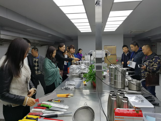 20日上午,在民建杭州市委會的聯系陪同下,調研組一行來到西城博司(杭州數字出版產業園),參觀米其林廚藝培訓學院。觀看了西點大廚現場教學,并與公司管理人員開展交流,現場體驗各類西式餐飲制作工具,對現代化西式餐飲教學有了更深入的了解。