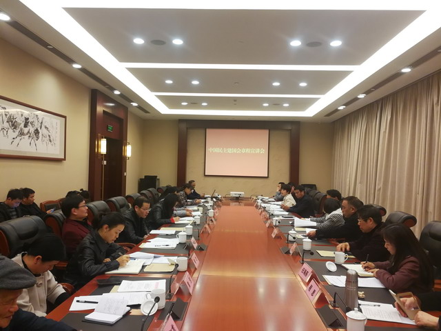 2018年3月1日上午,省委會專職副主委、巡視員郭吉豐赴金華就民建十一大修訂后的新會章進行宣講。市僑聯主席、市委統戰部副部長藍躍軍,市委統戰部部務會員成員、黨派干部處處長王萍到會指導。省委會社會服務處處長朱惠忠,民建金華市委會主委、市政協教文衛體委主任楊堅明,副主委朱茂丹,各基層組織主委和市委會機關干部29人參加會議。會議由市委會專職副主委陳琳主持。