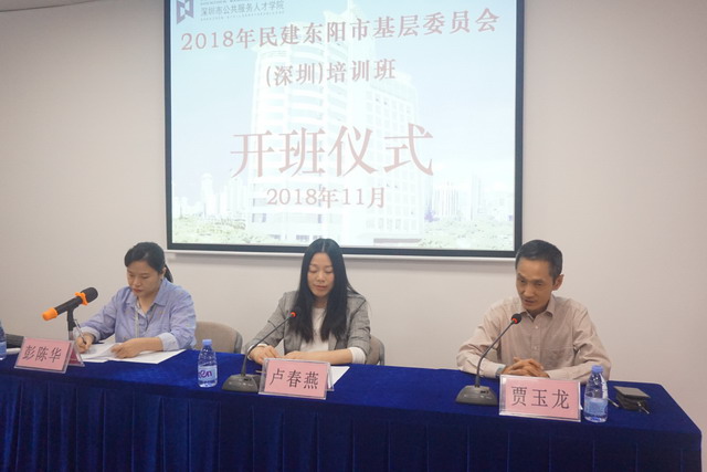 11月5日,在深圳市經理進修學院舉行了開班儀式。賈玉華院長介紹了當下國內經濟發展的趨勢,提出要“放水養魚,開山養林”。盧春燕副主委做了動員講話,要求會員明確目標,認清形勢,借此機會,了解前沿信息,招商引資,更好地服務東陽經濟發展。