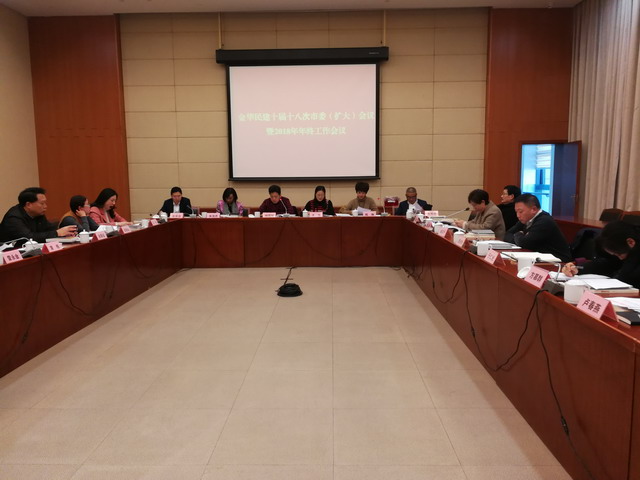 1月18日下午,民建金華市十屆十八次市委(擴大)會議暨2018年年度工作會議在市文化中心召開。市政協副主席、市委會主委楊堅明,副主委朱茂丹、翁榮金、陳琳、吳明根出席會議,市委委員及各基層組織負責人共30多人參會,會議由陳琳主持。市僑聯副主席、市委統戰部部務會議成員、黨派干部處處長王萍應邀到會指導。