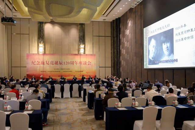 11月12日,參加活動的領導、嘉賓、學者,以及施復亮的家屬代表匯聚一堂,舉行紀念施復亮先生誕辰120周年座談會。