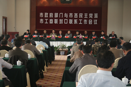 3月31日,召開市政府部門與市各民主黨派、市工商聯對口聯系工作會議。市委常委、常務副市長王勇,市各民主黨派、工商聯負責人王建康、成岳沖、張明華、陳大申、常敏毅、范誼、傅丹、羅龍利,市委統戰部常務副部長楊志強以及各對口聯系的市政府部門有關負責人等參加會議。