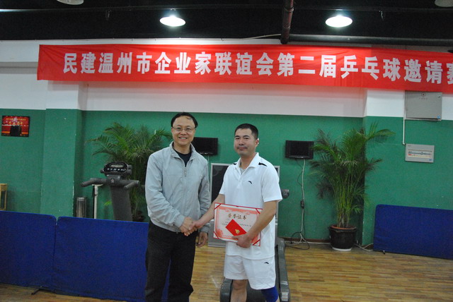 4月24日,民建溫州市企業家聯誼會在聯通乒乓球俱樂部舉行第二屆乒乓球邀請賽。民建溫州市委會主委朱貴遠在邀請賽上,鼓勵會員賽出風格,賽出水平,積極參與文體活動,營造我會凝心聚力的良好氛圍;民建溫州市委會副主委金克明、民建溫州市企業家聯誼會會長虞友義為獲得前三名運動員頒發證書。 此次邀請賽得到了《溫州商人》雜志社、溫州藝翰傳媒有限公司的大力協作。賽場上,氣氛活躍,高潮迭起,加油聲此起彼伏。讓會員得到了互相交流的目的。