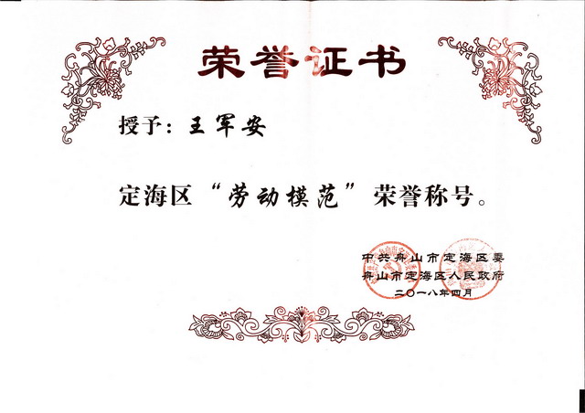日前,定海區委隆重召開2018年全區勞動模范表彰大會,表彰2013年至2017年全區各條戰線上涌現出來的勞動模范和模范集體,民建舟山市工委委員、定海區支部主委、弘業建設集團董事長王軍安被授予“定海區勞動模范”稱號。這是他數年來辛勤工作獲得的又一殊榮,也是舟山民建人的驕傲。