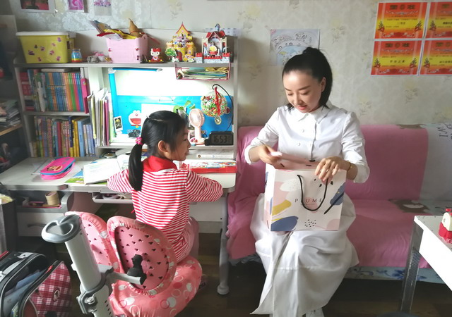 慰問組一行來到新結對的殘疾學生高婧茹家里,與孩子及家長親切交流,仔細詢問家庭及孩子的學習生活情況,并送上學習文具、書籍、禮品等慰問品,祝愿她節日快樂、天天開心。同時鼓勵她對生活充滿信心、積極參加康復訓練,爭取早日恢復。高婧茹對慰問組的到來感到格外開心,她向叔叔阿姨致以真誠的謝意,并表示將好好學習,積極康復,不辜負大家對她的關心和厚愛。