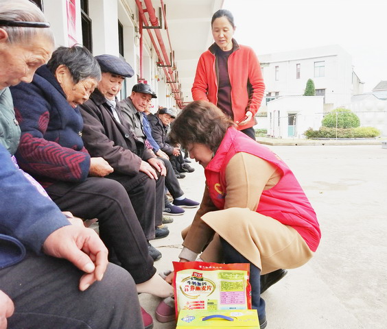 敬老院共有33位五保老人,最年長的92歲,平均年齡71歲。為了讓敬老院的年味更濃一些,民建會員們給老人宿舍門口貼上了春聯和“福”字,紅紅的春聯讓整個敬老院頓時喜慶了許多。“春聯貼起來,就有紅紅火火過年的氣氛了,謝謝你們!”敬老院的老人們非常開心,接連地夸贊。會員們還為老人們送上了御寒的棉鞋,并親手為老人們穿好。一句句簡單的家常,一次次深情的握手,都表達了民建會員一份誠摯的敬老之心,就似冬日的暖陽對老人而言彌足珍貴,整個院子里洋溢著一片溫馨祥和的氛圍。臨別時,老人們依依揮手送別。