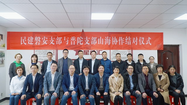 為深入推進磐普兩地合作交流,構建以黨派合作為特色的山海協作新格局,4月9日,民建舟山市普陀區支部與民建金華市直八(磐安)支部結對簽約儀式在磐安民建星合匯舉行。民建磐安支部主委、磐安縣政協副主席潘天壽,磐安縣委統戰部常務副部長馬化新,普陀區委統戰部副部長王海剛,民建普陀支部主委鮑中南出席。兩地統戰部、民建、民進、農工黨、九三學社等相關代表人員近20人參會并見證簽約儀式。