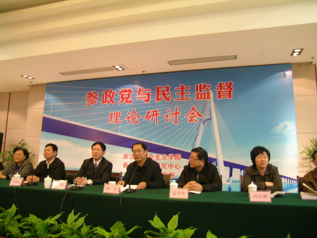 2010年12月3日至4日,浙江省社會主義學院暨參政黨建設研究中心舉辦“參政黨與民主監督”理論研討會。民盟中央副主席、省政協副主席、省社會主義學院院長徐輝致歡迎辭,中央社院黨組副書記、副院長周寧致辭。省委統戰部副部長,省社院黨組書記、常務副院長張惠康主持開幕式。中央編譯局副局長俞可平教授作“改革開放以來的政治改革看政府未來治理改革的重點”的專題報告。