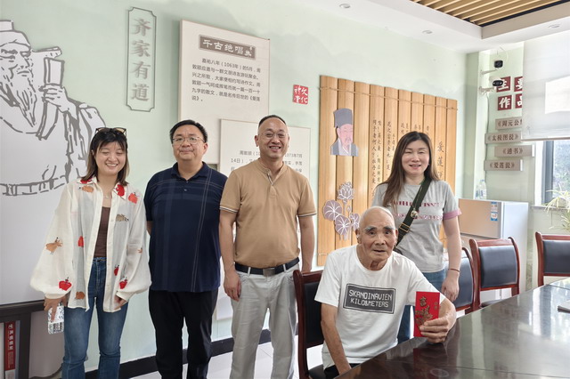 參觀結束后,會員們分成兩隊慰問抗戰老兵。鮑建鋒主委帶領鄒華忠、何淵、張鑫林等人,分別慰問了抗戰老兵張希福、黃雅云、陳希寶、虞修道;何俊副主委帶隊吳雪峰、何海舟、毛賽妮等人,前往赤岸鎮慰問了抗戰老兵成樟福、朱師喜、周福德。
