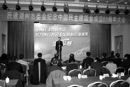 為紀念中國民主建國會成立65周年,民建湖州市委會近日舉辦了一場以“弘揚民建優良傳統,努力踐行社會主義核心價值體系”為主題的演講比賽。參賽者以自己的親歷親為、所見所聞為素材,謳歌了老一輩民建會員與中國共產黨肝膽相照、榮辱與共的光輝歷程,詮釋了民建堅持中國共產黨的領導,堅持走中國特色社會主義道路的堅定信念,展現了民建人愛國守法、愛崗敬業、愛會盡責,為湖州加快建設“富饒、秀美、宜居、樂活”的現代化生態型濱湖大城市貢獻力量的精神風貌。