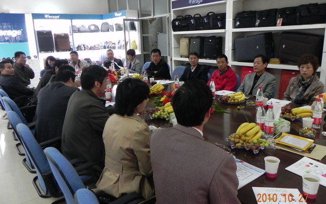 在產品陳列室,呂強向大家介紹了企業成立十多年來的發展歷程以及自己在經營中的經驗和體會。呂強坦言,公司經營到現在,之所以還能保持良好的發展態勢,并在同行業競爭中占據優勢,主要靠兩點。一是堅持“保守”經營,公司以自有資金數量來決定生產經營規模,有效地防范了因資金鏈緊繃導致企業失控等潛在的風險和危機;二是堅持原始品牌制造商的升級工作,當許多外貿企業仍然停留在代工階段的時候,杰瑪各種各樣的旅行用箱包都被標上了企業的自有品牌“VERAGE”,這一商標已經占總銷售額的50%以上,品牌的控制能力給杰瑪箱包帶來了高端定價和豐厚贏利的空間。