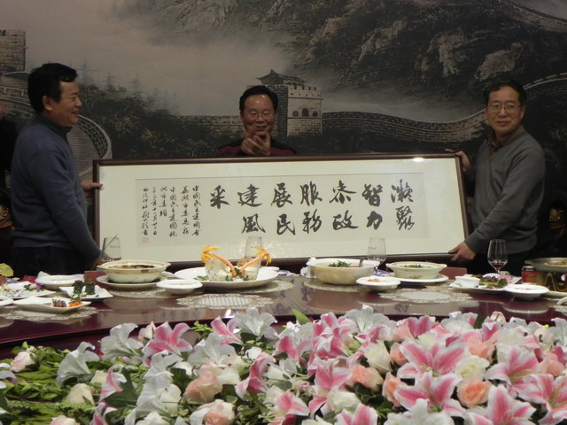在蕪湖市政府舉行的招待晚宴上,陳小平主委與蕪湖市市長楊敬農,蕪湖市政協副主席、民建主委楊高分別就兩地的經濟、社會發展和各自的會務工作進行了友好的交流。陳小平說,杭州、蕪湖一直來保持著良好的關系,希望以這次考察為契機,兩地架起進一步增進友誼的橋梁,充分利用各自優勢,在多個領域開展廣泛的合作交流,努力形成兩地攜手并進,共同發展的良好態勢。陳小平主委并代表杭州民建向蕪湖民建贈送了象征兩地民建組織正式締結友好關系的匾額。