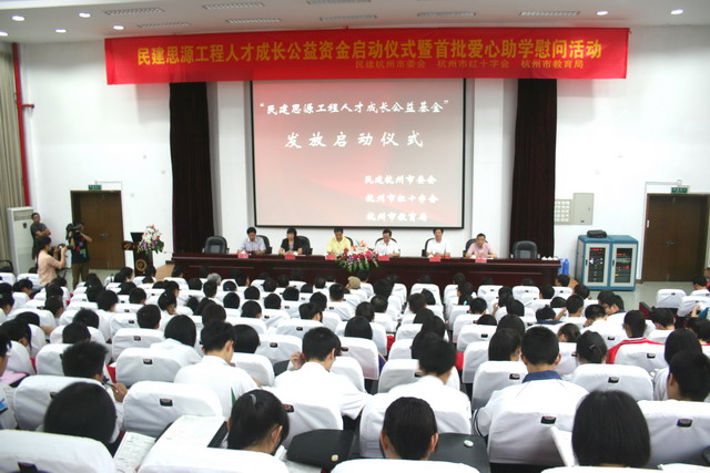 為進一步開展扶貧幫困工作,民建杭州市委會于近日設立由杭州民建會員企業家聯誼會出資、杭州市紅十字會具體實施的“思源工程人才成長公益資金”,首批募集資金總額110萬元。9月29日下午,資金啟動儀式在杭州市長河高級中學隆重舉行。杭州市副市長、民建杭州市委會主委陳小平,杭州市政府副秘書長張連水,杭州市教育局局長徐一超,杭州市紅十字會常務副會長陳美麗,民建杭州市委會副巡視員洪穎志,民建杭州市委會秘書長吳彥,杭州市長河高級中學校長陳立群等出席儀式。