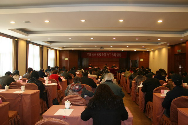 今年是中共中央、中共浙江省委、中共杭州市委,民建中央和民建浙江省委會的換屆之年,也是我市全面實施“十二五”規劃,打造東方品質之城、建設幸福和諧杭州的重要一年,新階段賦予宣傳思想文化工作更加特殊而重要的使命。為此,會中央把思想宣傳工作確定為今年的重點工作。為充分調動會員的積極性,認真抓好思想宣傳工作,民建杭州市委會于3月22日-23日在梅竺度假村舉行宣傳工作培訓班。杭州市科技局副局長、民建市委會副主委徐土松、秘書長吳彥、副巡視員洪穎志,各基層組織宣傳工作負責人及全體機關干部共80余人參加培訓。中共杭州市委統戰部副部長楊志剛應邀到會。