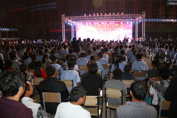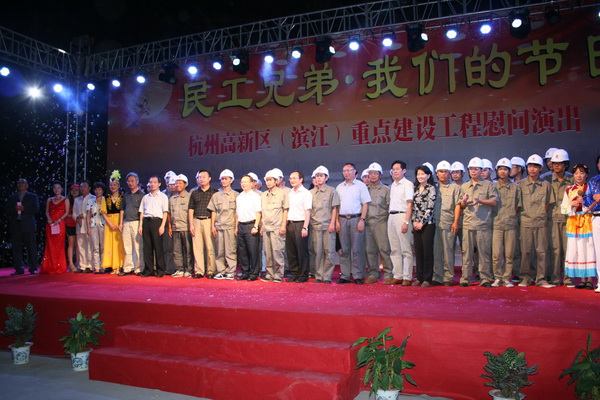9月28日的夜晚,明月高懸,微風送爽,一派祥和安寧。在中秋節和國慶節即將來臨之際,民建高新區(濱江)總支在杭州市奧體博覽中心工地組織舉辦了“民工兄弟•我們的節日”慰問演出,給民工兄弟帶去節日的歡樂,打造創新創業新天堂,建設幸福和諧新濱江。民建省委會主委、杭州市副市長、民建市委會主委陳小平,杭州市民族宗教事務局局長、民建市委會副主委郭清曄等會領導參加了慰問活動。