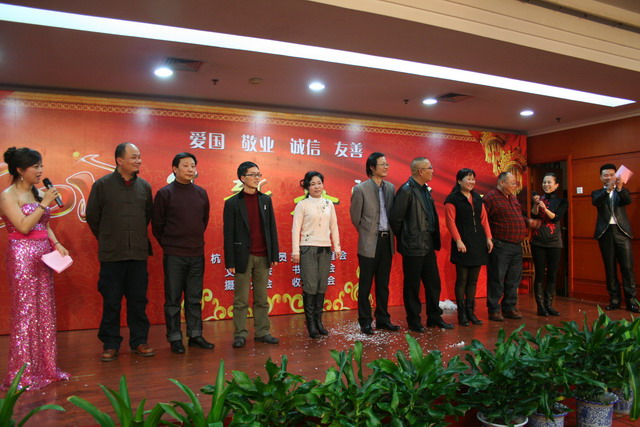 藝聯會各分會根據自身特長,充分展示風采。文藝分會上演了精彩的文藝演出;書畫分會在四周懸掛了個人書畫作品,供成員品鑒,還準備了春聯送福;攝影分會展示了成員作品,會長顧勇作了精彩點評并捐獻了獎品作為鼓勵;收藏分會會長管建平、副會長胡成敏、魏立中捐獻了收藏品鼓勵獲獎會員。